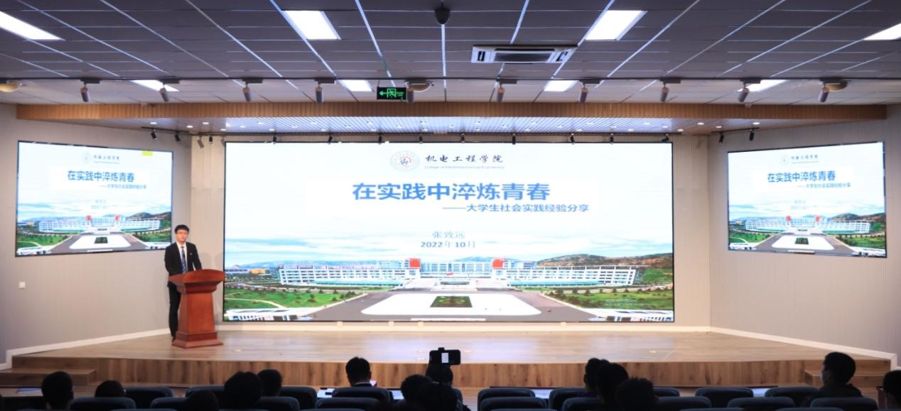 社会实践优秀学生代表张致远,分享社会实践经验,清晰的讲解了寒暑假社会实践应该怎样开展,怎样更好的开展,为同学们的社会实践提供了宝贵的实践经验。