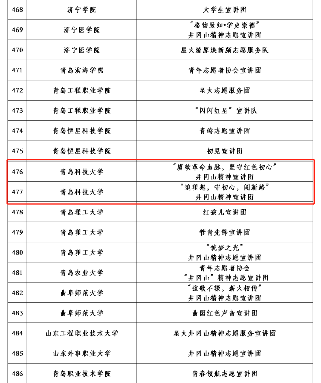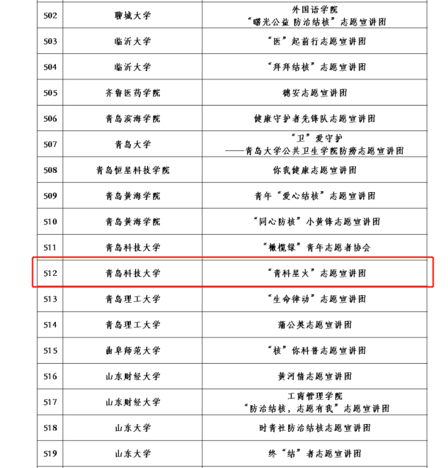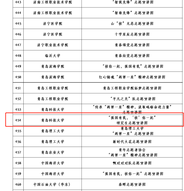 近日,团中央青年志愿者行动指导中心公布2023年全国大学生“两弹一星”精神志愿宣讲团、“防治结核 志愿有我”志愿宣讲团、井冈山精神志愿宣讲团、“七彩假期”志愿服务示范队入选名单,青岛科技大学共11支团队入选,其中澳门十大信誉好的网站5支,为学院参与全国千支大学生志愿宣讲团选拔最好成绩。