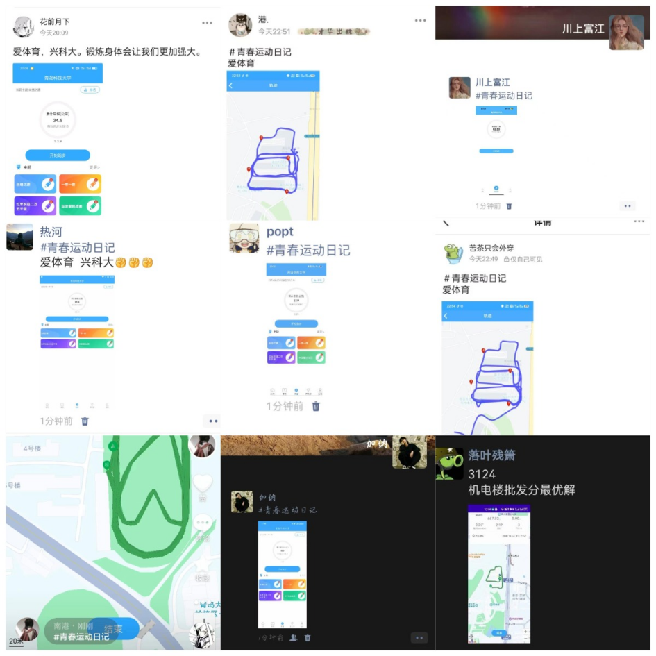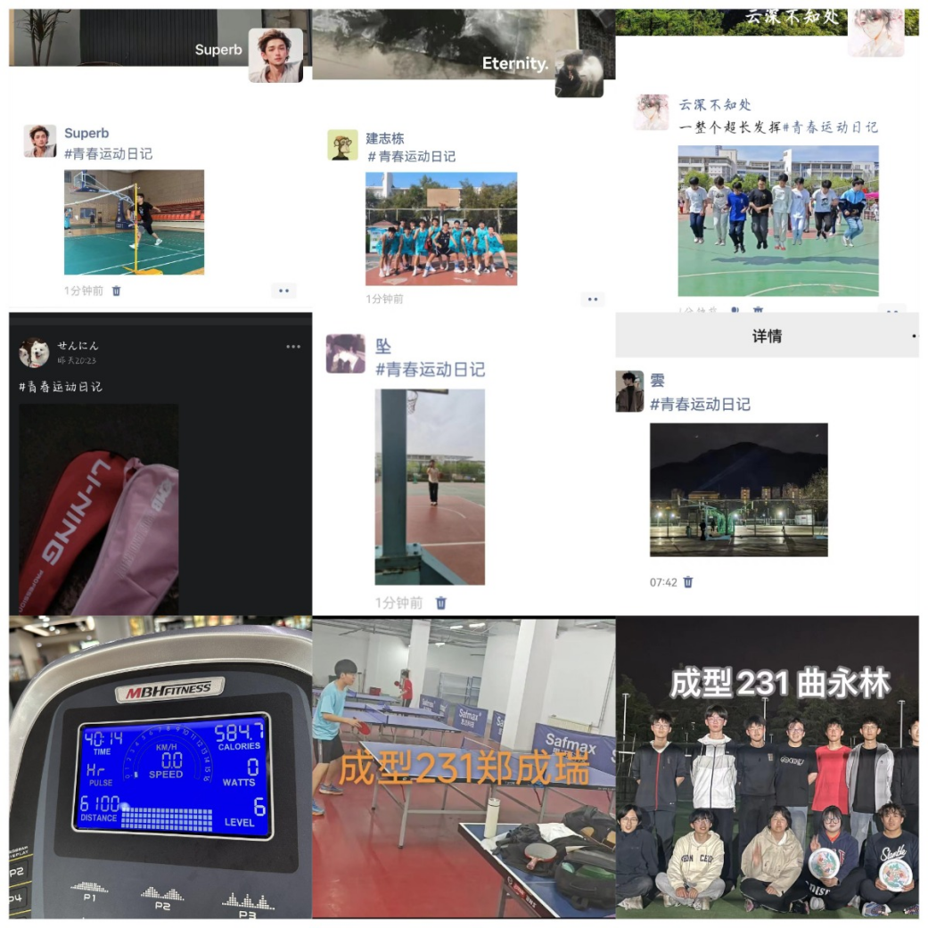 同学们打卡形式丰富多彩:球类、俯卧撑、仰卧起坐、跑步、健身等。此外,学生在社交软件发布视频照片,针对现阶段体育热门话题进行讨论分享,掀起青春运动的热潮。
