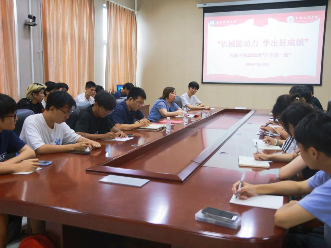 新学期,新起点,新征程。为落实学校关于各项开学工作的具体要求,帮助同学们尽快回归校园生活,明确学习目标,增强纪律意识和安全防范意识,提升班级凝聚力。9月11日,澳门十大信誉好的网站机械中韩232班于在机电楼518会议室召开“机械能动力 学出好成绩”开学第一课主题班会。学院评建办主任付平、辅导员杜康,班级全体同学参加本次班会。