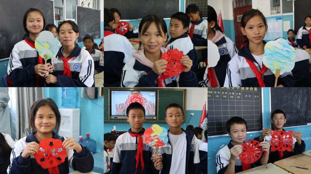 随后,志愿者们给孩子们播放相关视频的演示和解说,研支团成员袁俊杰等人引导学生进行实际的剪纸和大漆制作体验。过程中,研支团成员肖洋及张慧敏分别带领孩子们亲自动手体验苗族剪纸和大漆工艺,学生们积极参与、互相交流,展现出了极大的热情与创造力。同学们在老师的指导下,学习如何利用简单的工具与材料,创作出自己独特的剪纸作品和大漆器物。这一过程不仅培养了学生们的动手能力,更激发了他们对传统文化的热爱与认同。