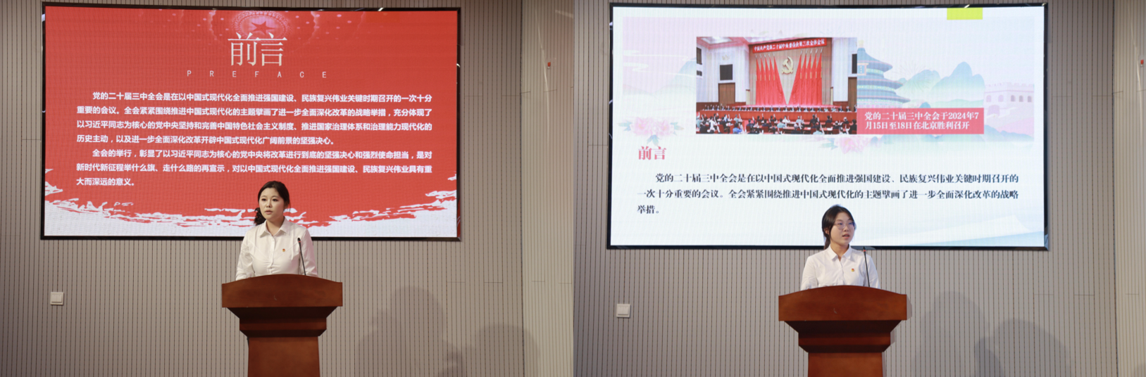 在理论宣讲环节,宋爱侠作了《全面深化改革,推进中国式现代化——深入学习贯彻党的二十届三中全会精神》的主题宣讲。她深入阐述了全面深化改革的重要性及其与推进中国式现代化的内在逻辑,激励同学们不断提升自身能力,适应新时代发展要求。郭钰则以《6个关键点!学习贯彻党的二十届三中全会精神》为题,通过生动浅显的解读,帮助同学们深刻理解全会精神,鼓舞大家为实现中华民族伟大复兴贡献力量。
