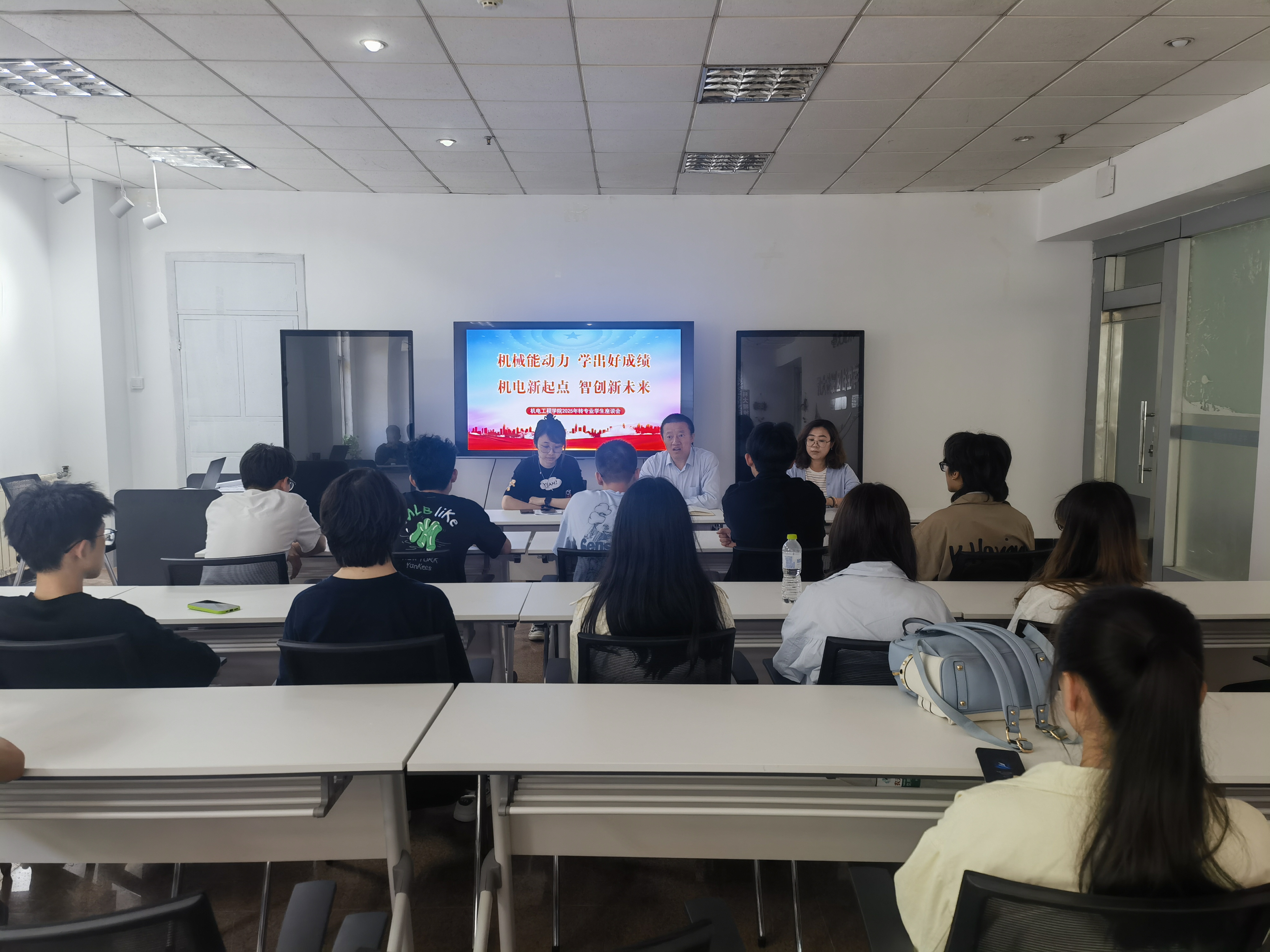 5月20日,澳门十大信誉好的网站举办“机电新起点、智创新未来”2025年转专业学生座谈会。学院党委副书记杨小明、教学办窦金、辅导员周韫涵、26名转专业学生参加座谈会。