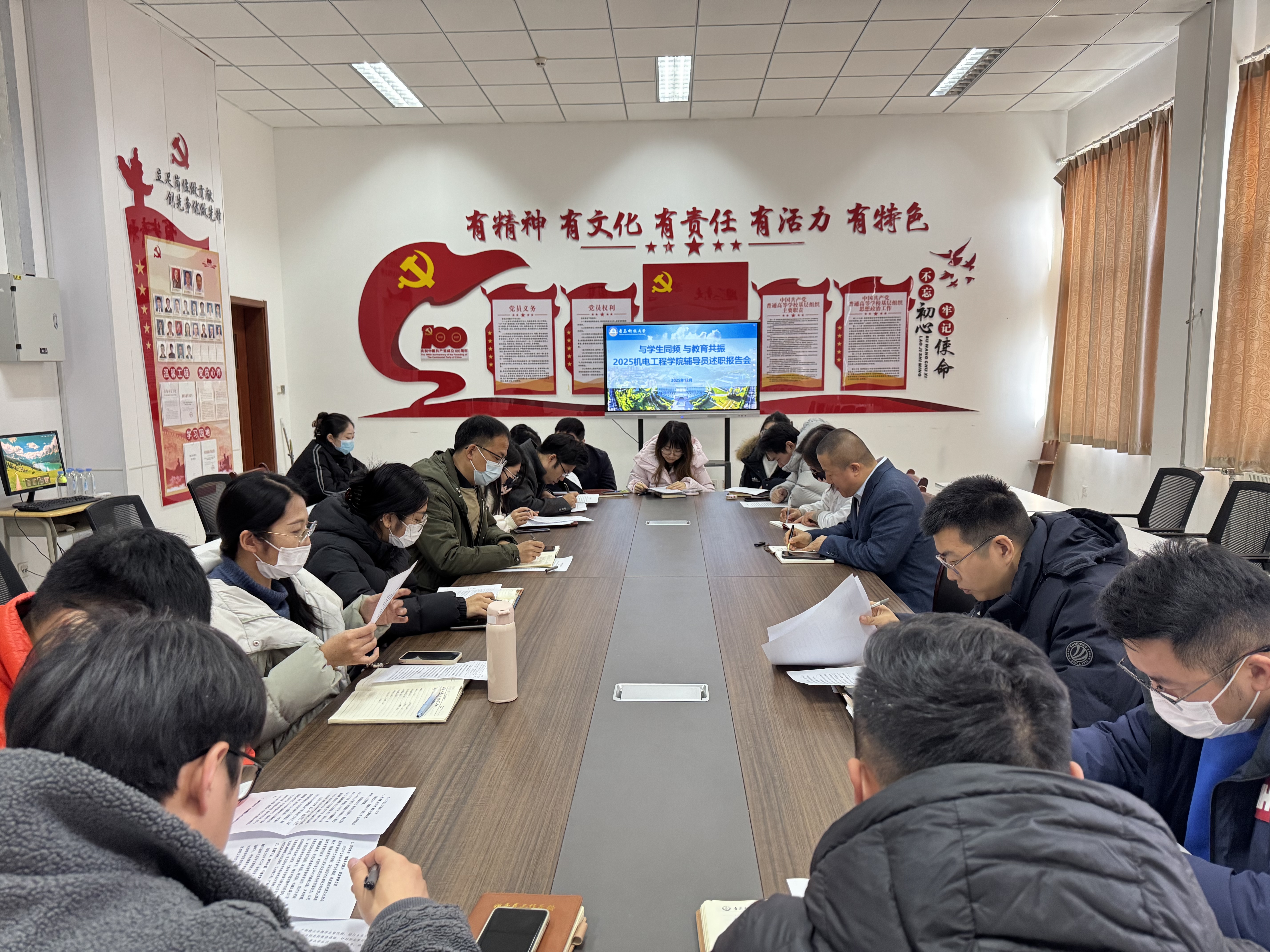 会上,全体辅导员围绕辅导员九大职责,结合年度工作实际展开述职。大家以详实的数据、生动的案例,全面展示了在思想引领、学生教育管理服务、学业辅导与就业指导、心理健康教育等方面的工作成果。同时,各位辅导员坦诚剖析了工作中存在的不足,明确了下一步工作规划。本次述职评议会不仅是对2025年度学生工作的系统总结与评议,更是一次“实践交流+能力提升+科研赋能”的综合学习会。