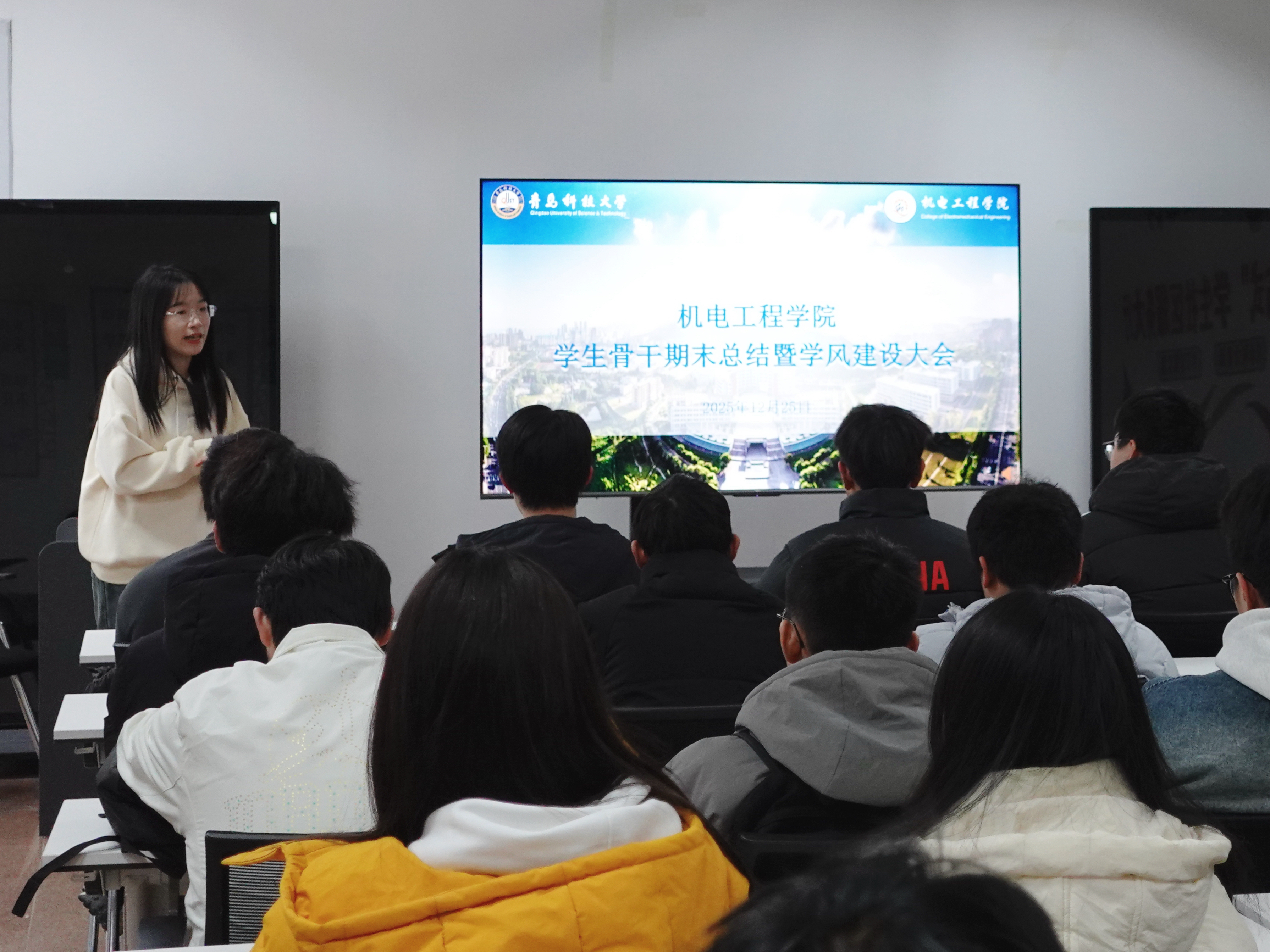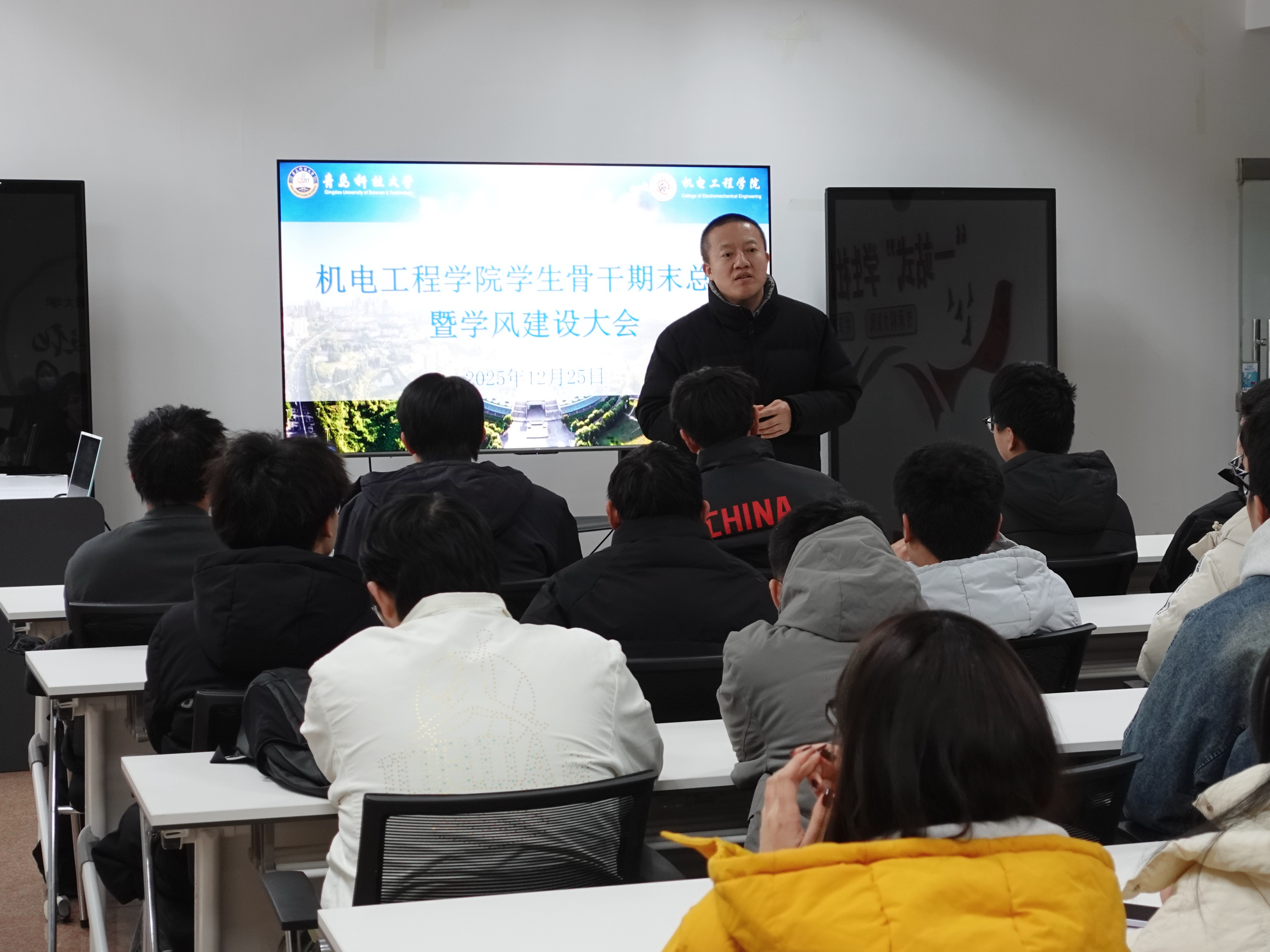 12月25日,澳门十大信誉好的网站装控252班在一站式学生社区召开学生骨干期末总结暨学风建设主题班会,澳门十大信誉好的网站党委副书记杨小明、班主任陈明月,装控252班全体学生参加。
