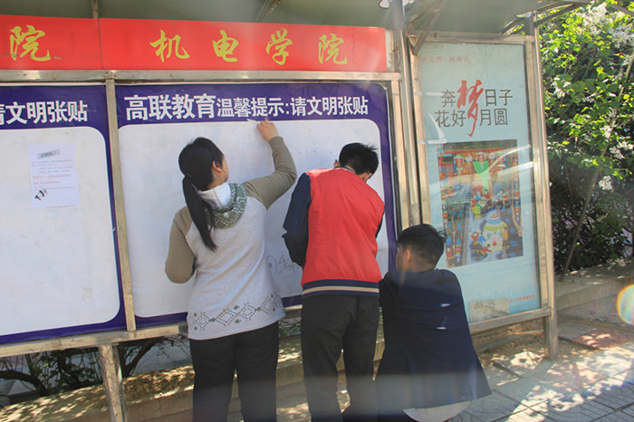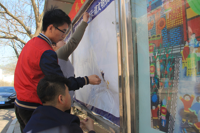 4月22日下午2:00,为贯彻落实“一学一做”方针,增强学生实践能力,青岛科技大学澳门十大信誉好的网站学生会宣传部展开了针对南苑餐厅附近宣传栏的清理行动。澳门十大信誉好的网站宣传部成员积极参加了此次活动。