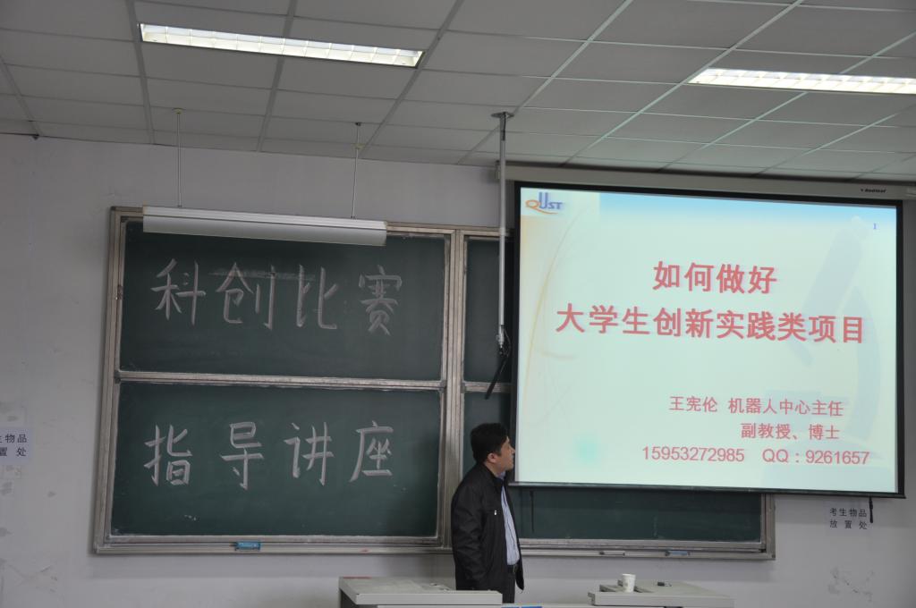 4月21日上午9:00,由澳门十大信誉好的网站科技创新协会组织举办的科创比赛指导讲座于弘毅楼E区103教室举行,澳门十大信誉好的网站机器人中心主任王宪伦亲临现场指导,讲座吸引了广大科技爱好者积极参加。