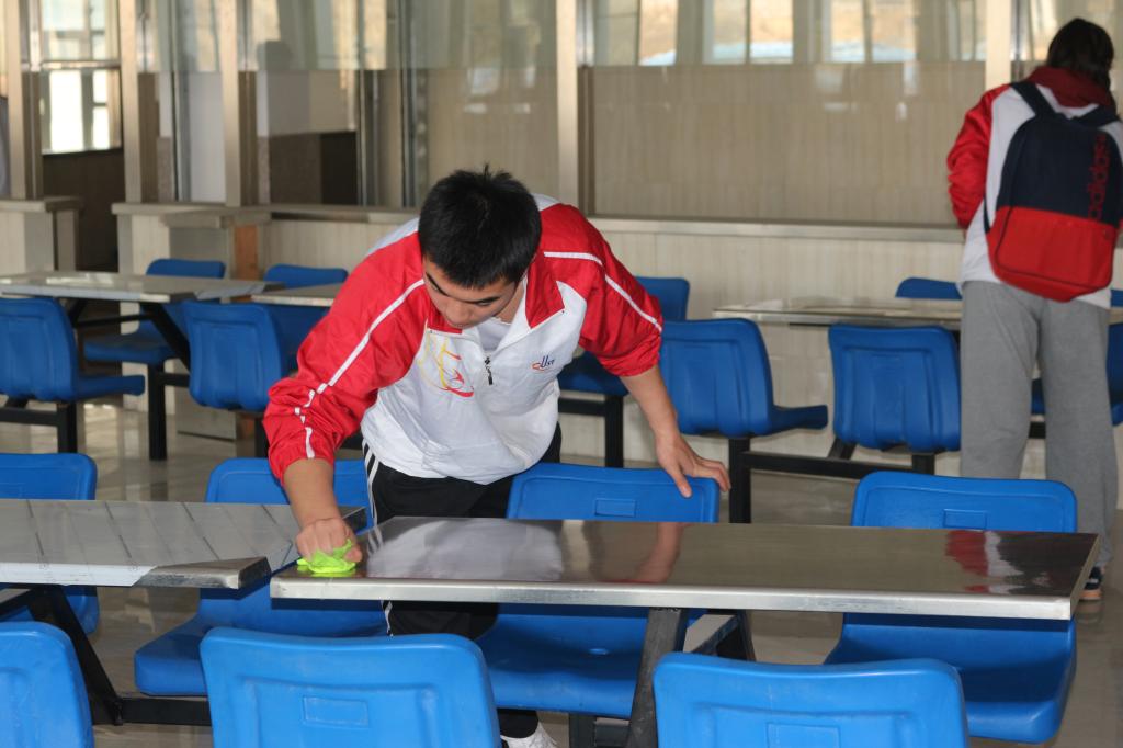 根据本次活动方案及分团委老师们的严密部署,全体志愿者分为两组进行义务清扫。一组负责擦洗桌椅,另一组负责清扫地面,尽管打扫过程很辛苦,但是同学们却热情饱满,做得十分用心,他们秉承着“学习雷锋,弘扬雷锋精神”的理念,不怕脏,不怕累,认真地清扫餐厅三楼的每个角落。通过近一个小时的艰辛劳动,北苑餐厅三楼的环境被干事们清理得干干净净。虽然辛苦,但志愿者们脸上的笑容却依然灿烂,透露出一种幸福的信息,尽管天气还有点寒冷,但是同学们的心里都暖洋洋的。新时代的雷锋精神在澳门十大信誉好的网站学生会每个成员身上体现了出来。雷锋精神已深深融入到中华儿女建设祖国、奉献社会的热血中,更体现在了当代大学生助人为乐、无私奉献、全心全意为人民服务的活动中。