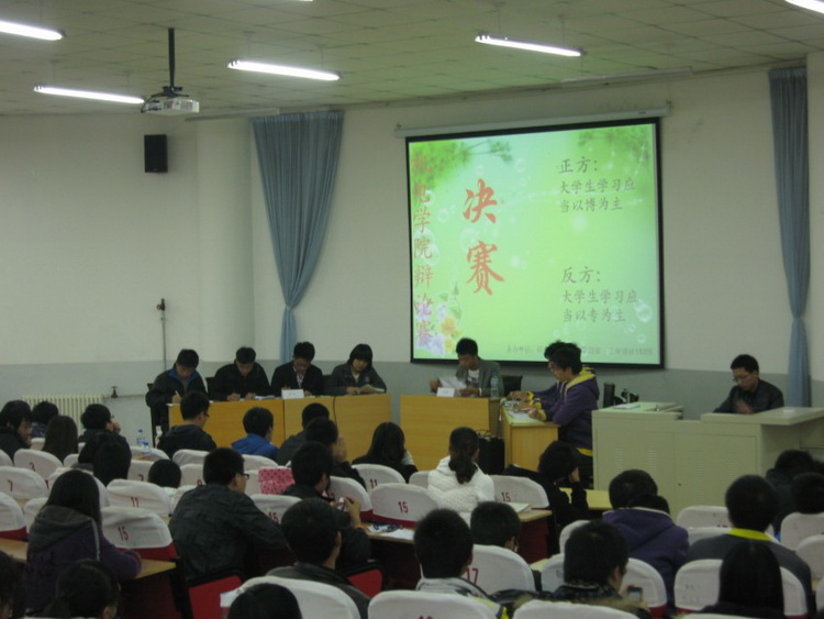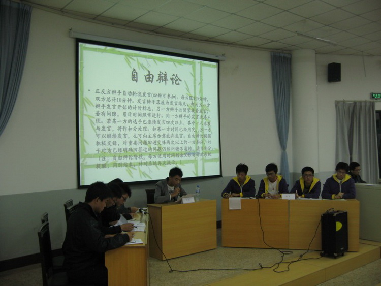 11月27日晚19:00,由澳门十大信誉好的网站学生会主办,工业设计113班承办的澳门十大信誉好的网站2011级年级辩论赛决赛在高密校区通德会堂202举行。澳门十大信誉好的网站分团委秦洪庆老师,学生会主席团成员担任比赛评委。