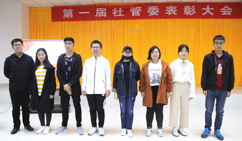 活动首先进行颁奖环节,王梦玉、姚良振等获评一等奖,孙健、张楚等获评二等奖,刁 旭、刘耀珍等获评优秀干事,微尘志愿者协会、心理健康协会、青尘义工队获评优秀部门,社管委秘书处、新媒体获评突出贡献部门。社管委主席董运龙和社管委秘书长李洋分别为获奖同学和优秀干事颁发证书和奖品,分团委逄柏鹏老师为获奖部门颁发了荣誉证书,并告诫同学们以他们为榜样努力奋斗。随后董运龙上台进行了工作总结,最后由逄老师发表讲话,肯定各协会半学期以来的工作,同时也指出工作和活动中不足,进一步确立社管委工作方向。到此表彰大会圆满结束。