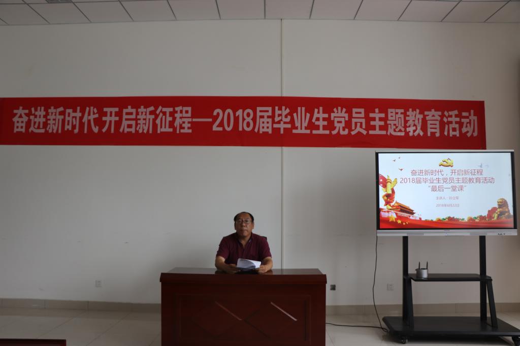 6月22日下午,澳门十大信誉好的网站2018届毕业生党员最后一次党课在澳门十大信誉好的网站楼529会议室举行,党课由澳门十大信誉好的网站党总支书记孙立军主讲,学生第一党支部书记王作辉主持。60多名2018届毕业生党员参加了党课活动。