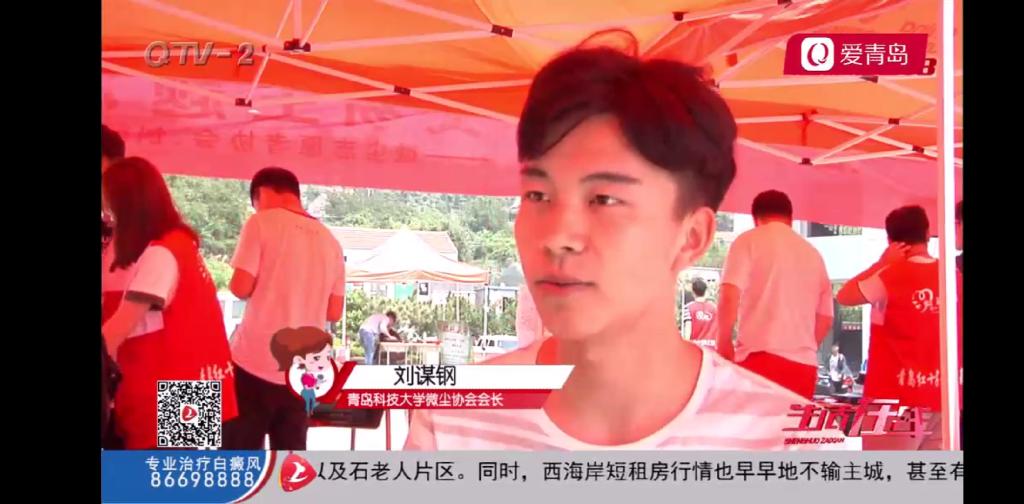 6月23日下午6时,青岛科技大学微尘协会于青岛广播电视台生活在线栏目播出《大学生投身公益,成为爱心志愿者》中亮相,主要播出内容为多任会长的感悟和微尘协会的发展现状。