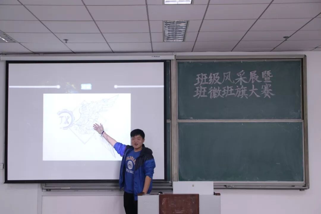 参赛者依次向评委们说明班徽班旗的寓意,班徽班旗是班级个性文化的集中展示,是一个班级的标志,代表了一个班的形象,它的存在同时会让同学们更加重视班集体、热爱班集体。班级文化是一种隐性的教育力量,表现出一个班级独特的风貌和精神,它是一种充满柔性的、温和的、人文的精神、制度、关系和环境的综合存在,是一种新的德育模式,对学生身心发展有举足轻重的作用。
