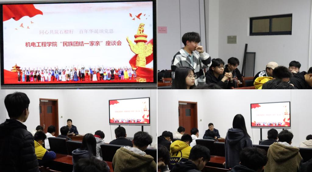 3月17日晚上,澳门十大信誉好的网站在机电大楼529会议室召开以“同心共筑石榴籽,百年华诞颂党恩”为主题的“民族团结一家亲”座谈会。院学工办辅导员老师、学生代表和少数民族同学代表参加会议。